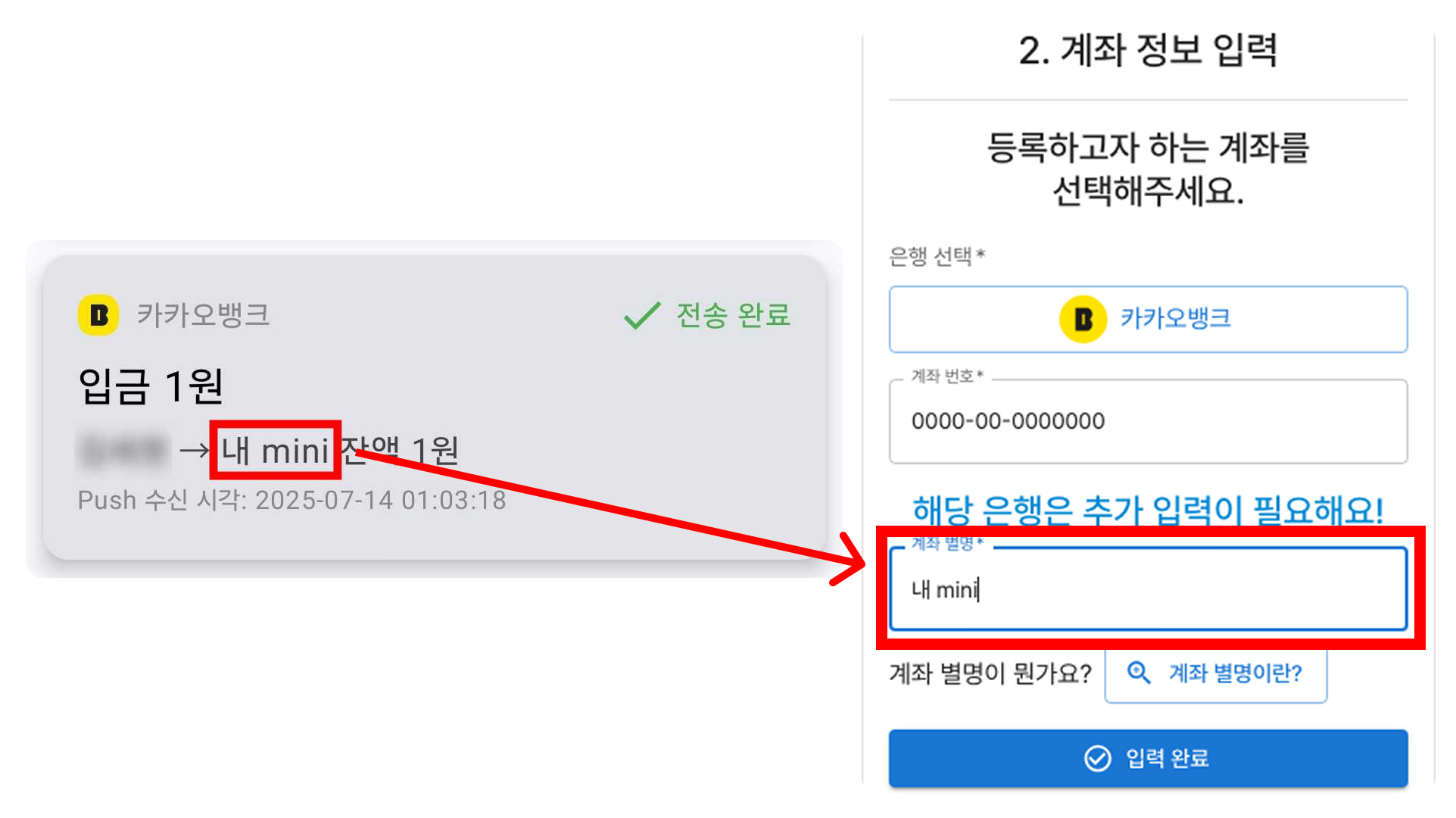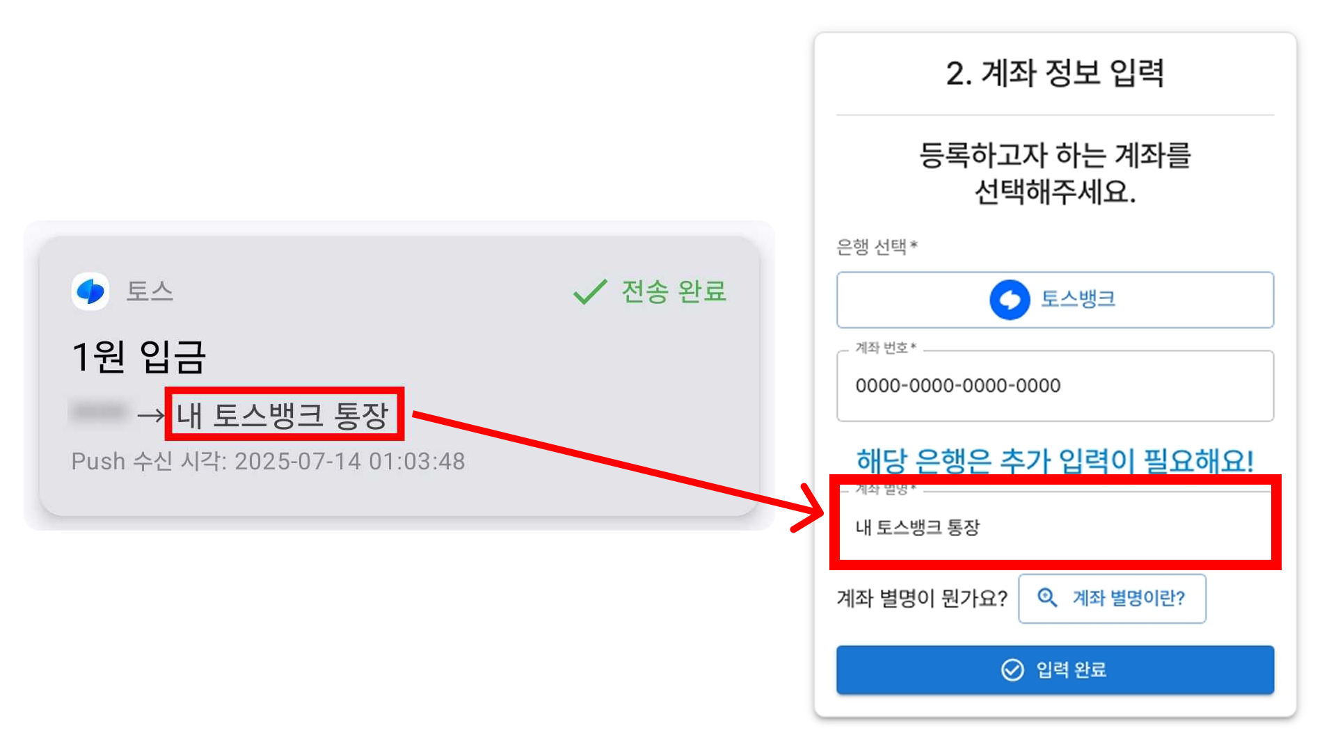 계좌 별명은 은행 앱에서 사용자가 직접 지정한 계좌의 별칭이에요.